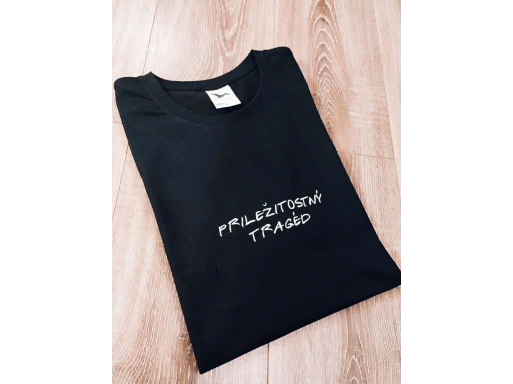 Vyšívané tričko s textom Priležitostný tragéd.